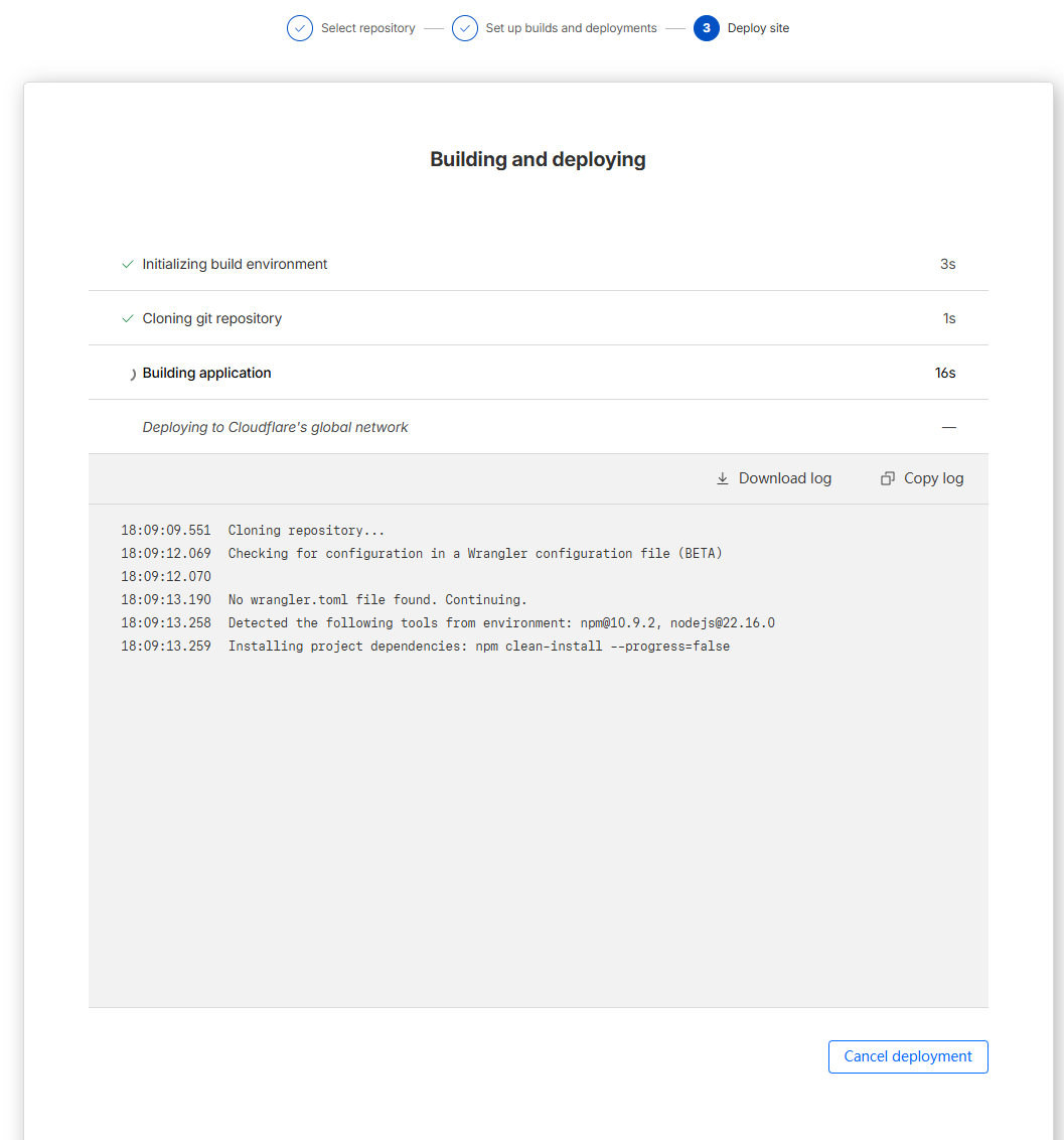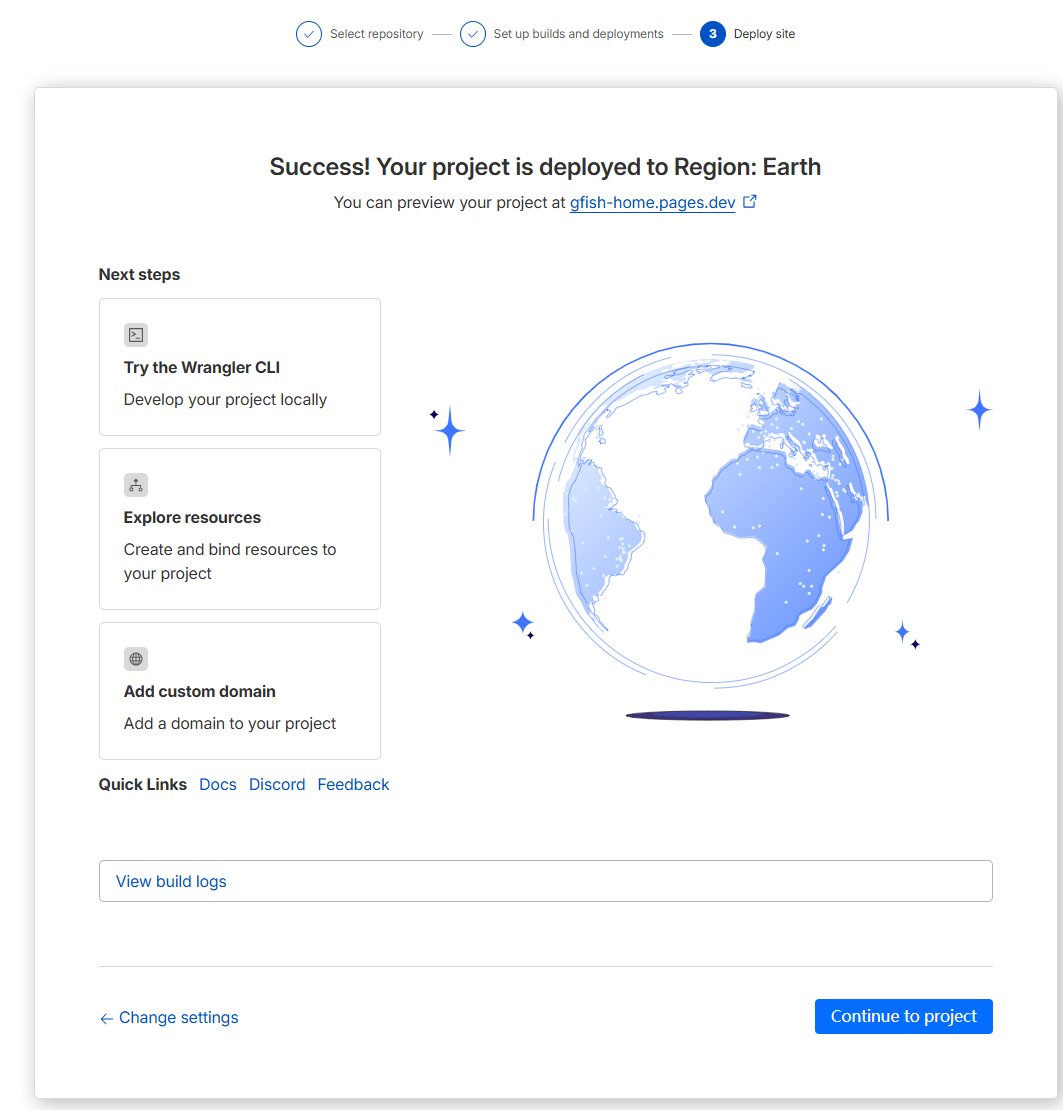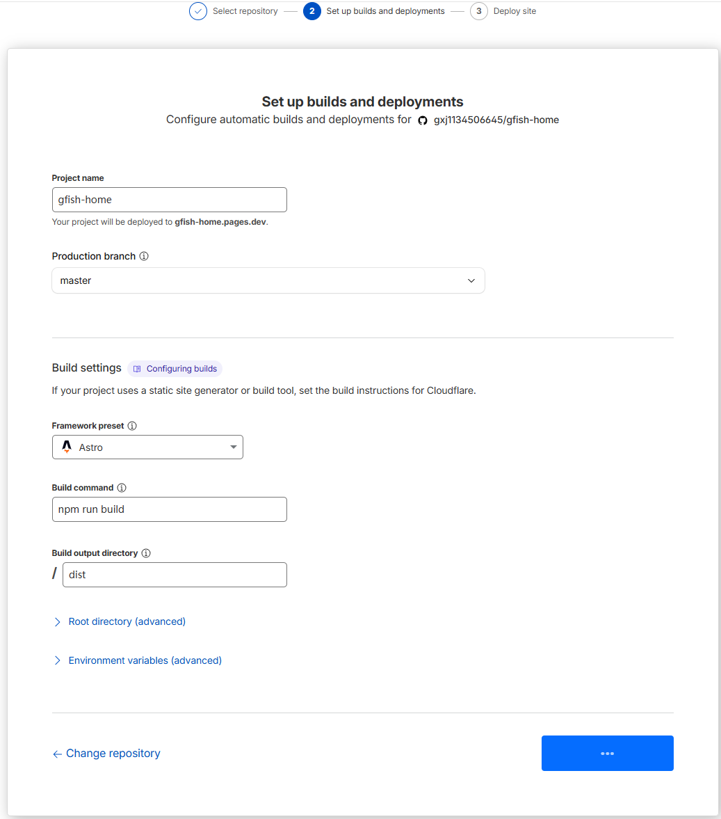 - 选择 “How do you plan to deploy?” 选 “Cloudflare Pages” 或 “Other”