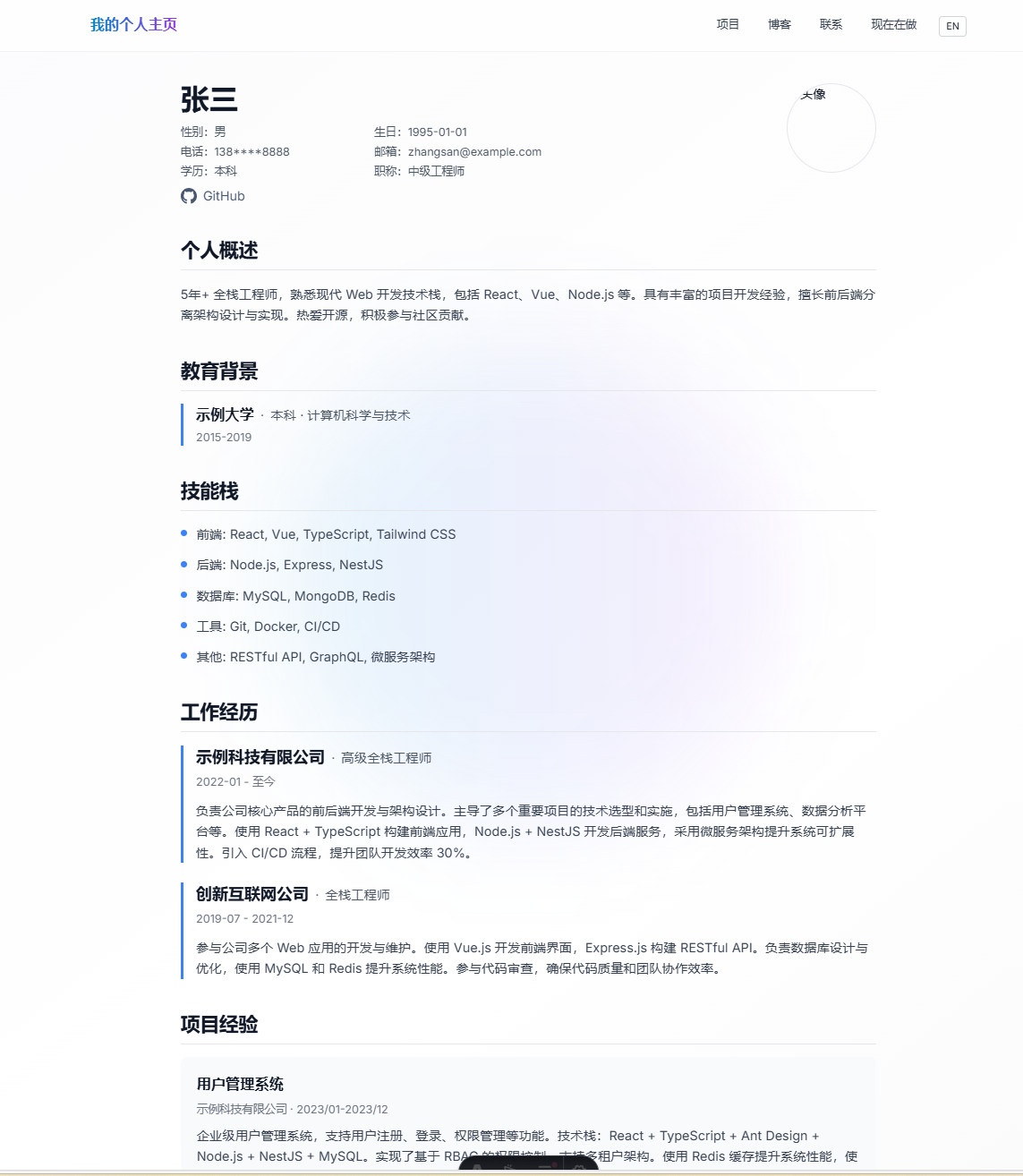 作为一名开发者,我一直希望有一个属于自己的空间,用来记录技术心得、分享项目经验、展示学习成果。写过不少技术文章,但总是散落在各个平台;做过一些有趣的项目,却没有一个统一的地方展示。