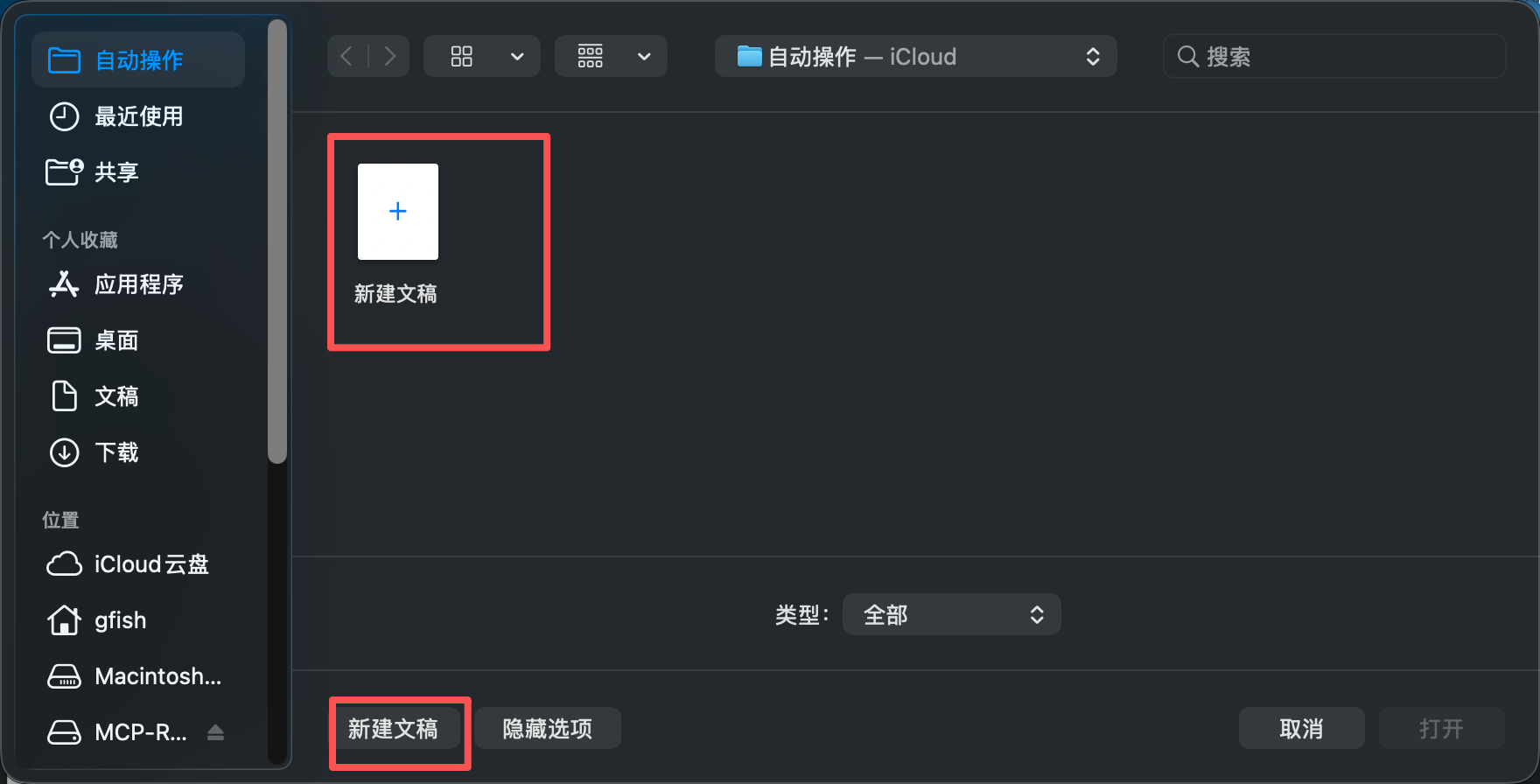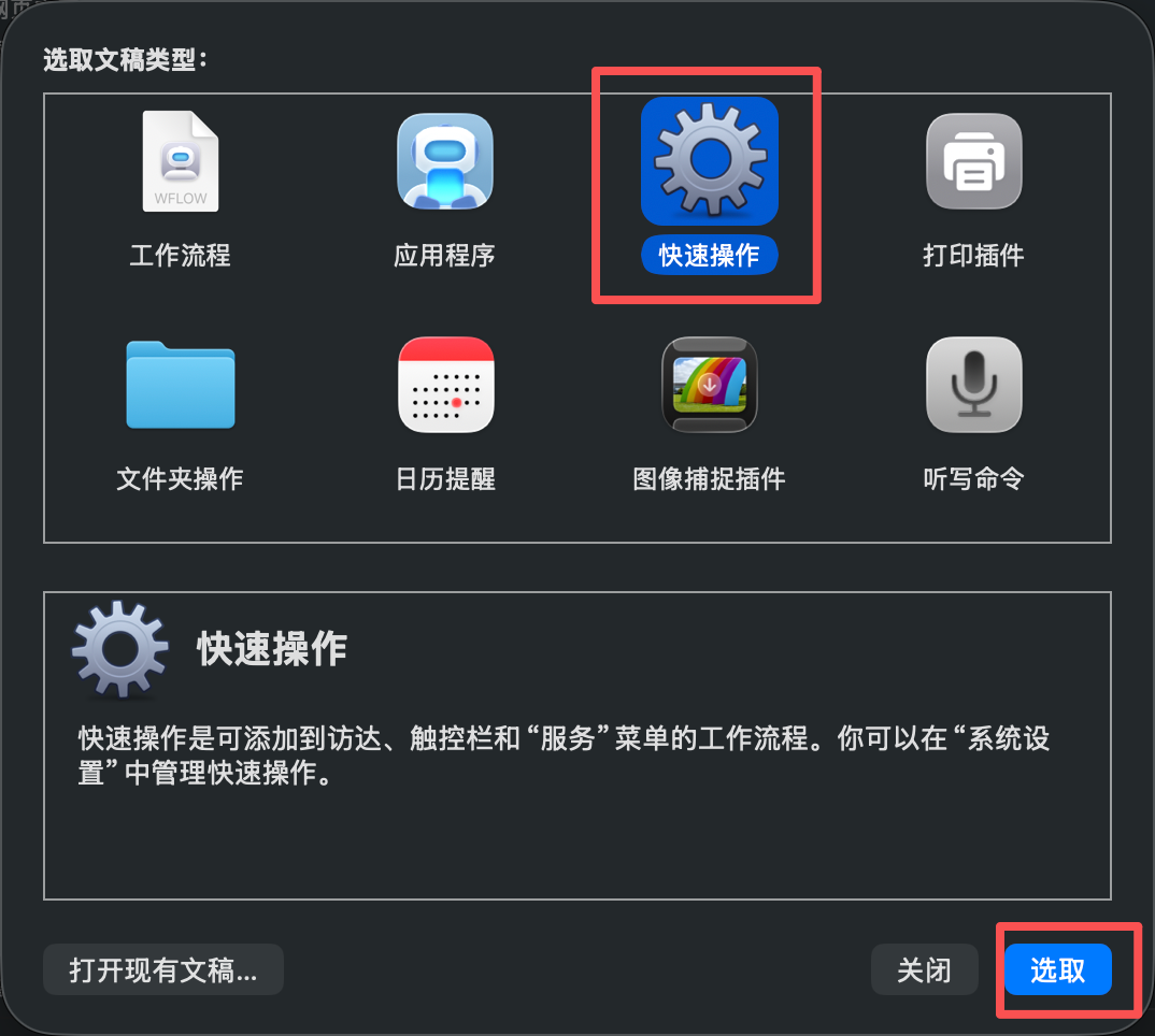 第一步:新建 Automator 快速操作