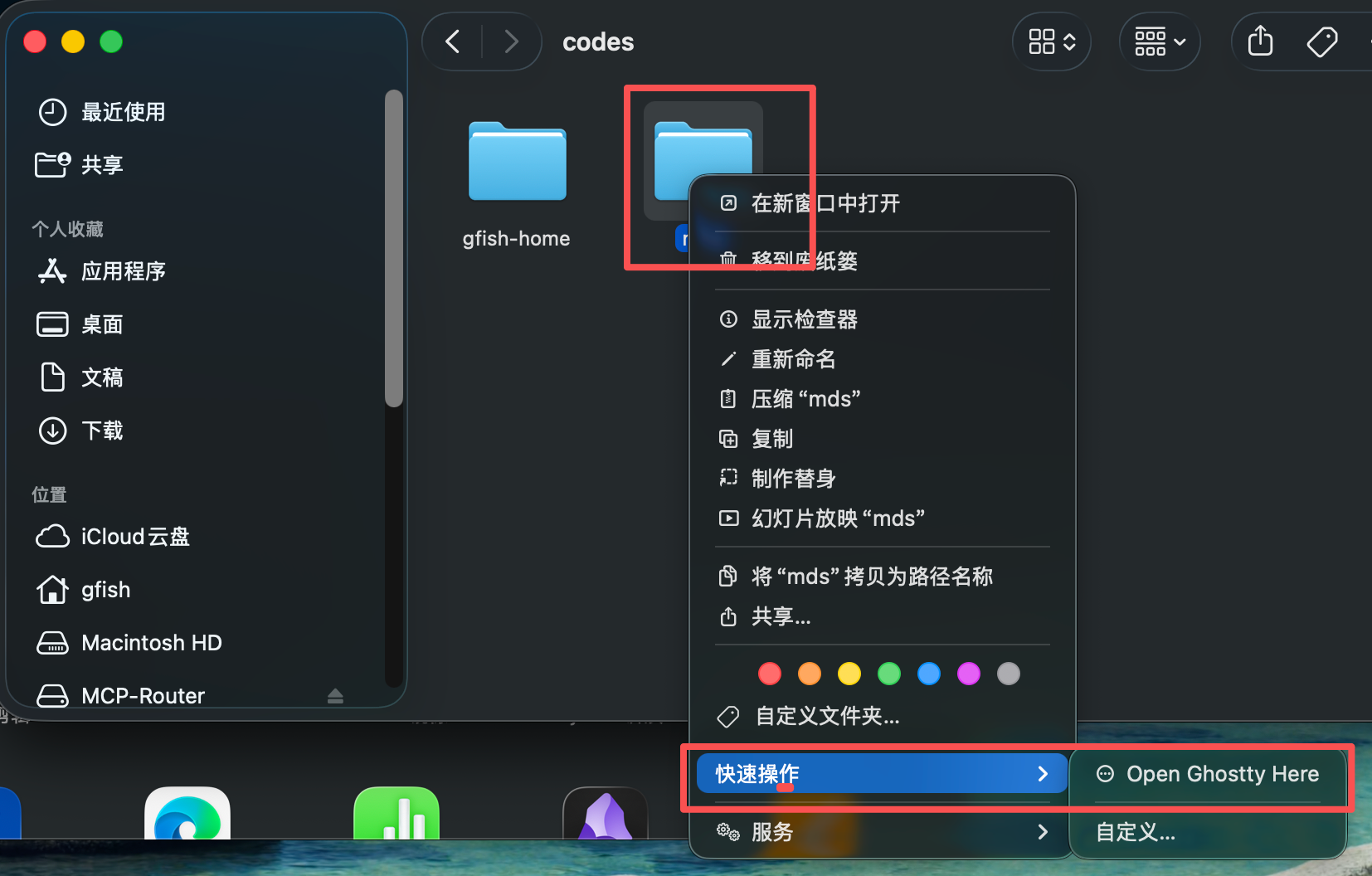 快速操作 -> Open Ghostty Here