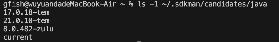 注意:sdk use 只对当前终端会话生效,关闭终端后恢复默认版本。